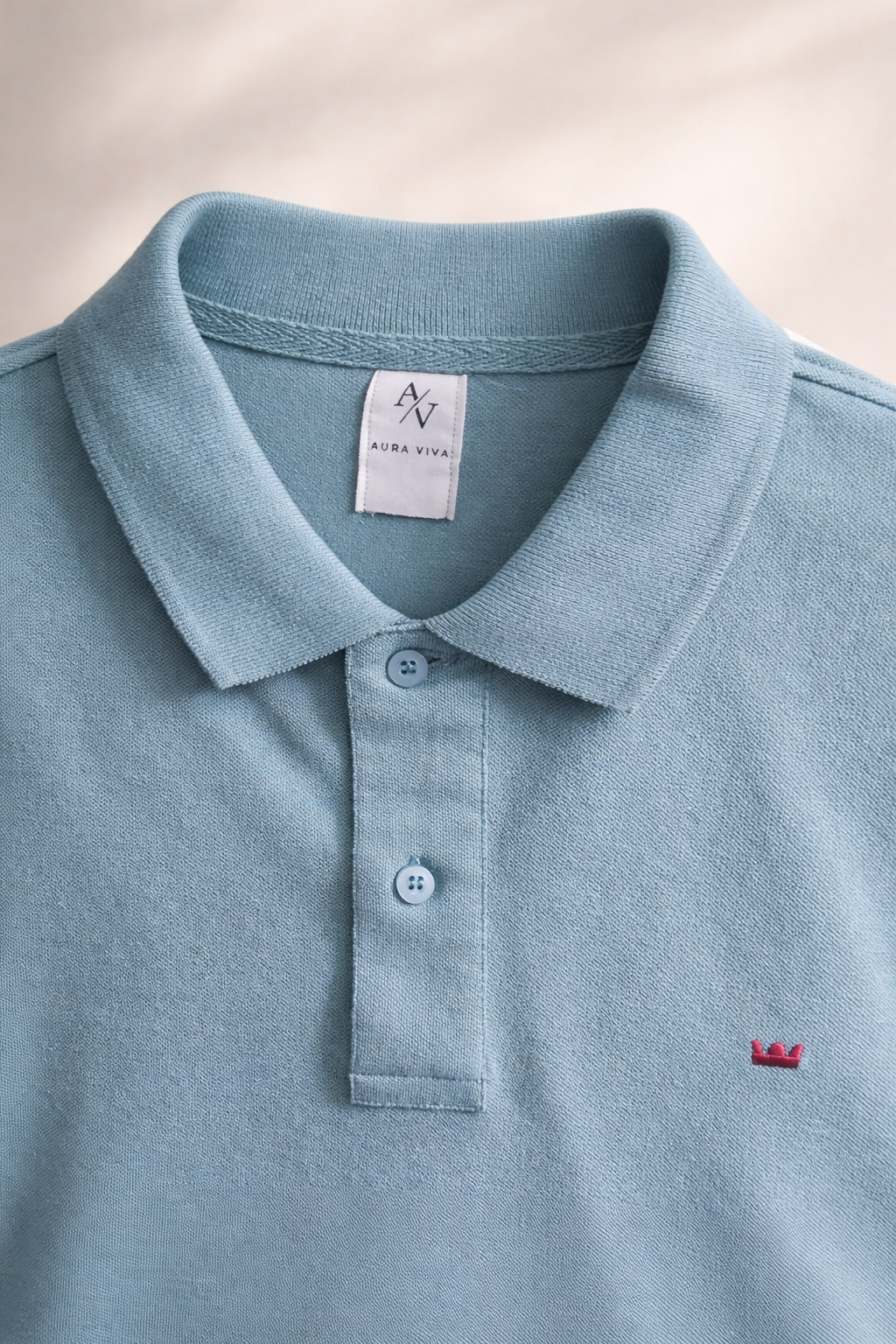 El color para este polo es el verde, acompañado de un logo bordado en forma de corona color burdeos.